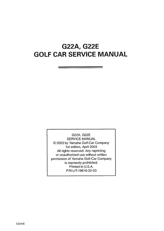 Yamaha G22 G22a G22e Golf Cart 2003 Service Manual Pdf Etsy De